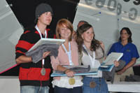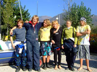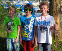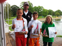 | Anica Rimmele (YC Immenstaad), Xaver Rimmele (YC Immenstaad) und Christian Schenk (RC Rastatt) als Trainer/Betreuer Fabian Bach. Die Ergebnisse der Immenstaader Segler: Jessica 17., Xaver 27., Anica 61., Hendrik 62. und Lioba 81.! Die komplette Ergebnisliste gibt's hier... Fotos gibt's hier... | ||