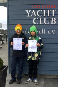 Erste Regatta in Radolfzell Daniel Boog und Marc Müller segelten am 06./07. April ihre erste Opti-Regatta im Jahr 2013, den Zeller Sparkassen-Cup. Bei sehr kühlen Temperaturen hatten sie leider noch Startschwierigkeiten und belegten die Plätze 17 (Daniel) und 18 (Marc) von 28 Opti-B-Seglern. Moritz Heger startete mit seinem Vorschoter Christof Ade im 420er. Sie belegten den 8. Platz von 15 Booten. Gesamtergebnis unter Regatta --> Ergebnisse |